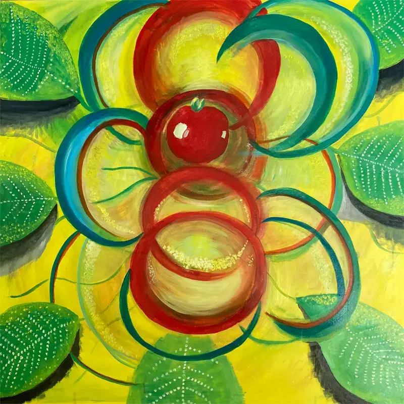 This is a print of a 1 metre by 1 metre square painting – oil on canvas, by Akasha Love.